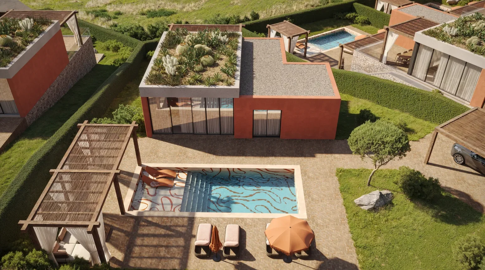 Each villa comes with breathtaking sea views, spacious terraces, and a private pool. Every block is crafted with high-end materials and thoughtful design. With panoramic views of the La Maddalena archipelago, this is Sardinia at its best – timeless Mediterranean beauty.